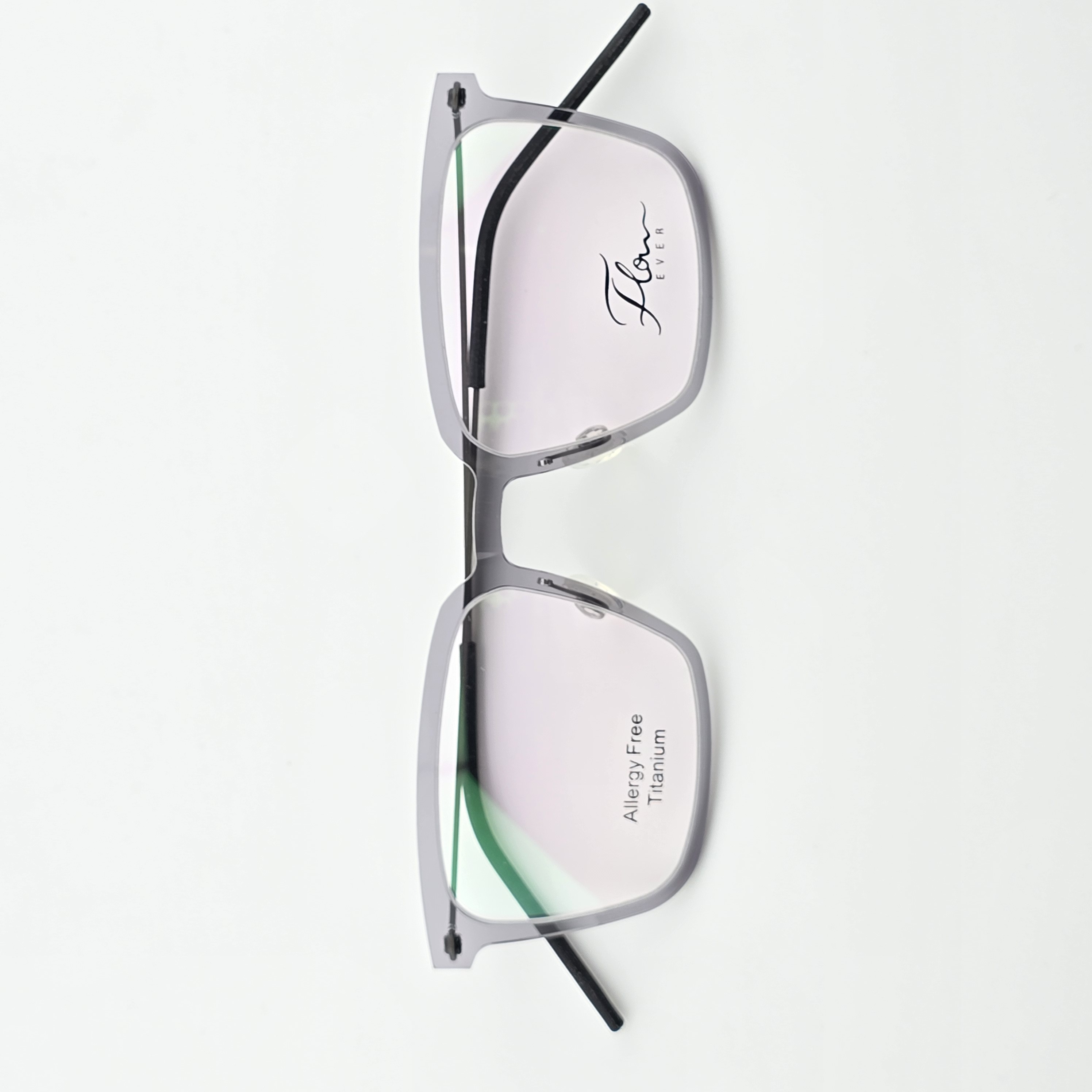 فریم عینک طبی تیتانیوم اولتم رنگ طوسی شفاف دسته تیتانیوم مدل مستطیلی
