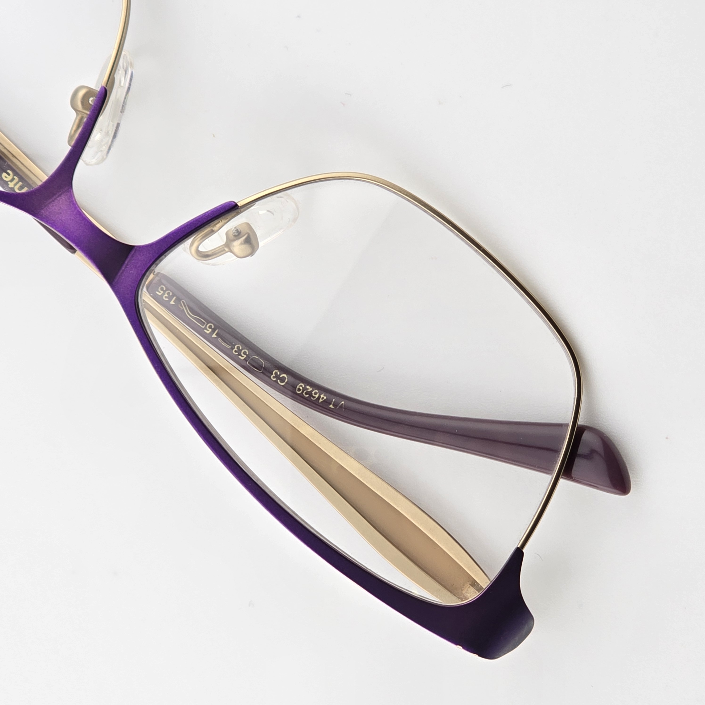 چند رنگ (بالای فریم بنفش مات پایین فریم طلایی مات ،دسته ها ترکیب بنفش و گلبهی و طلایی مات و داخل فریم کاملا طلایی )