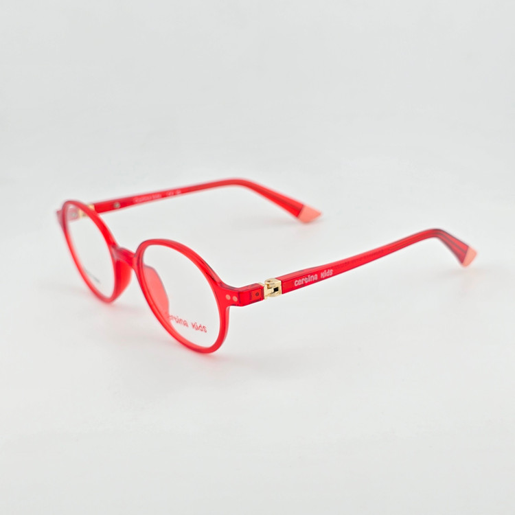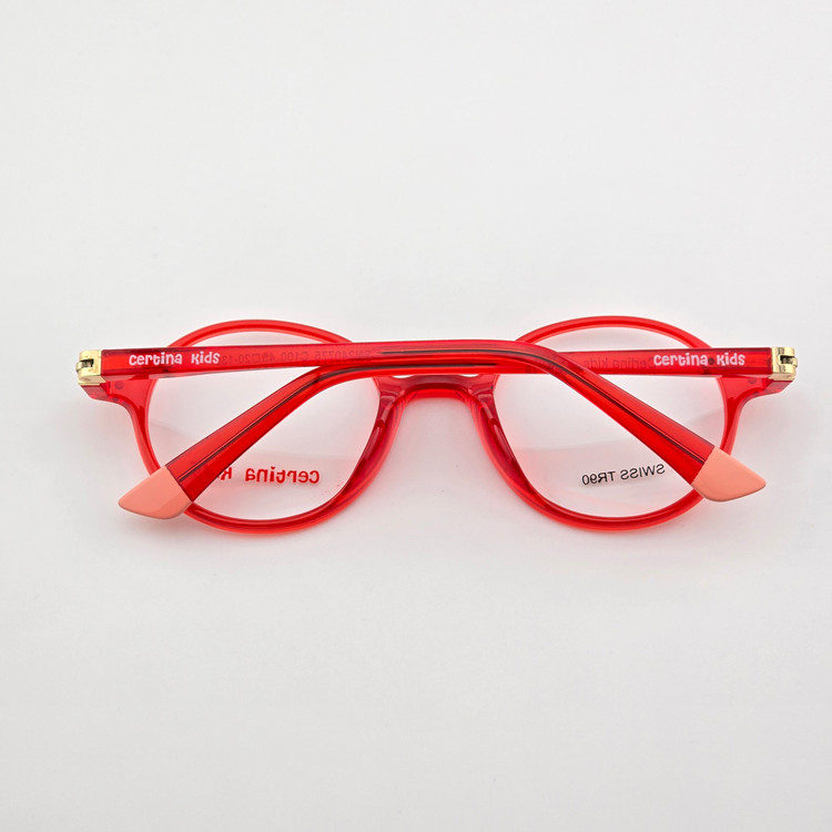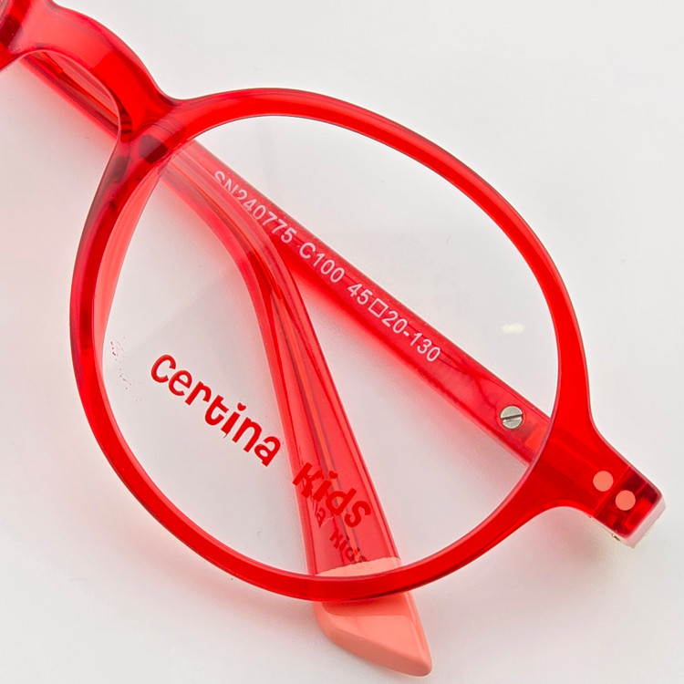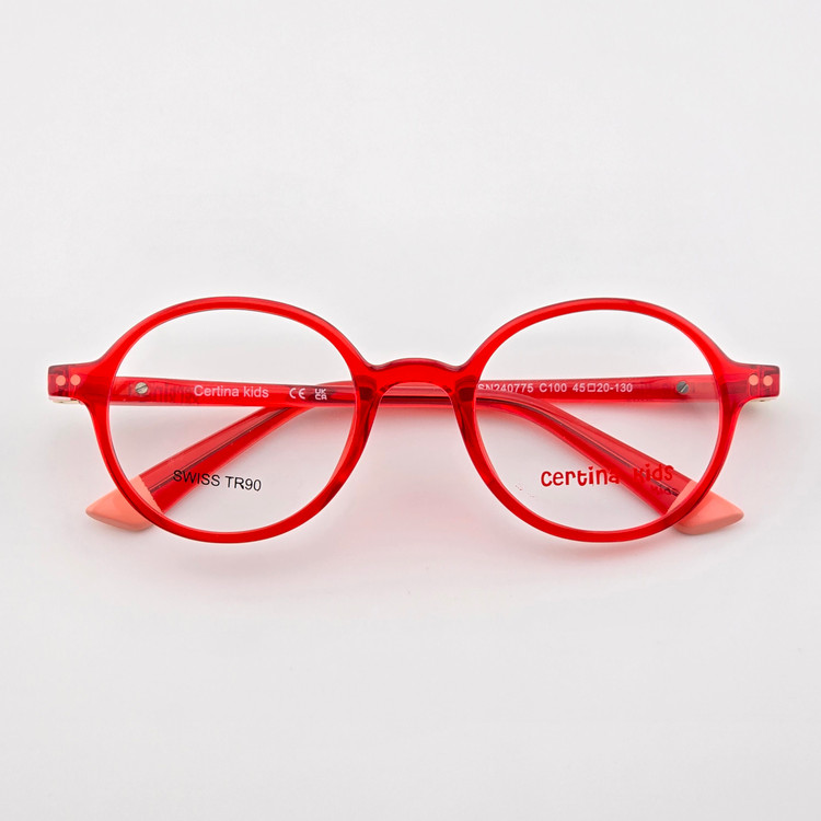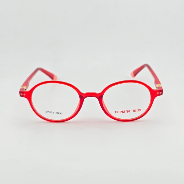 فریم عینک طبی کائوچو دخترانه و پسرانه سرتینا کیدز(Certina Kids) مدل گرد رنگ قرمز شفاف
