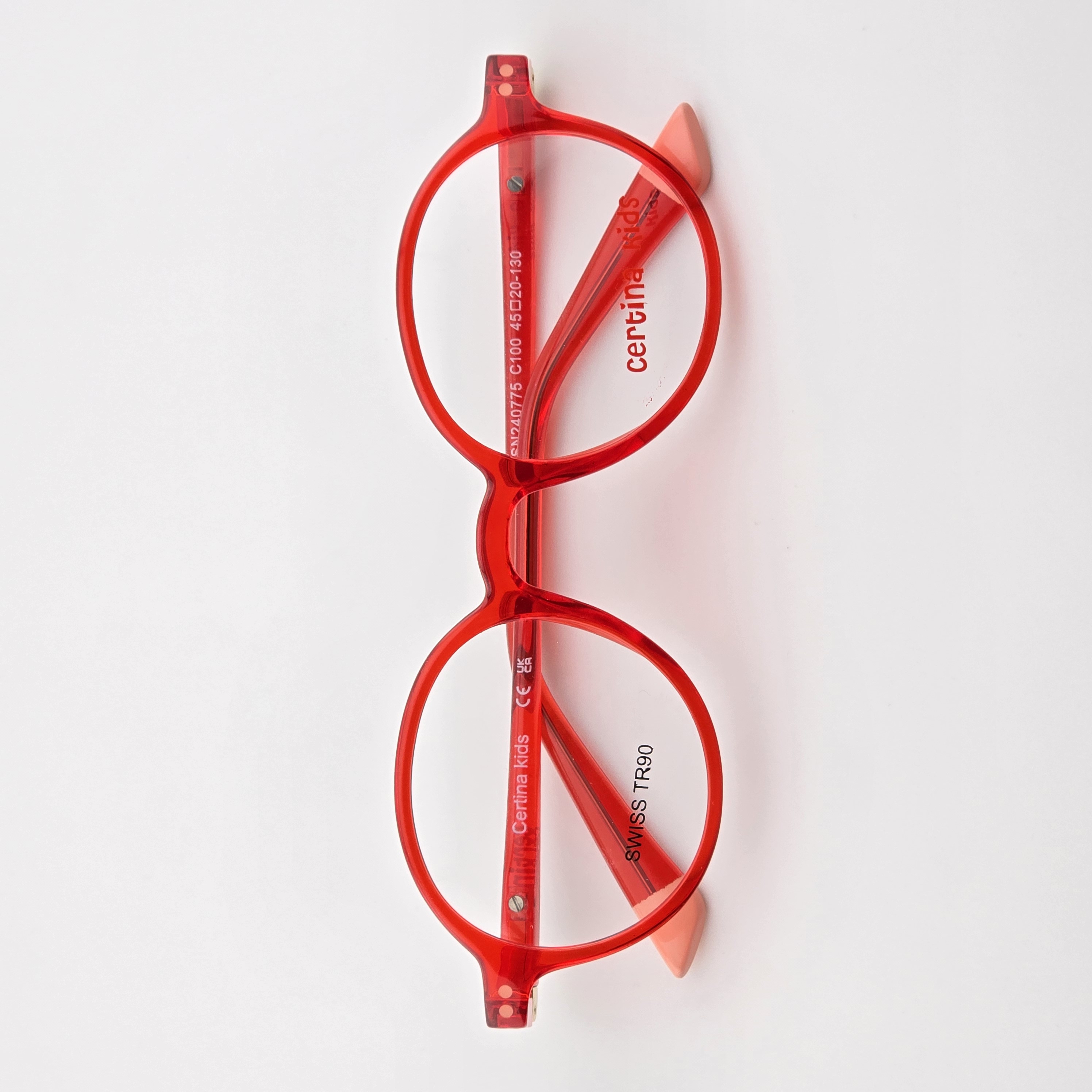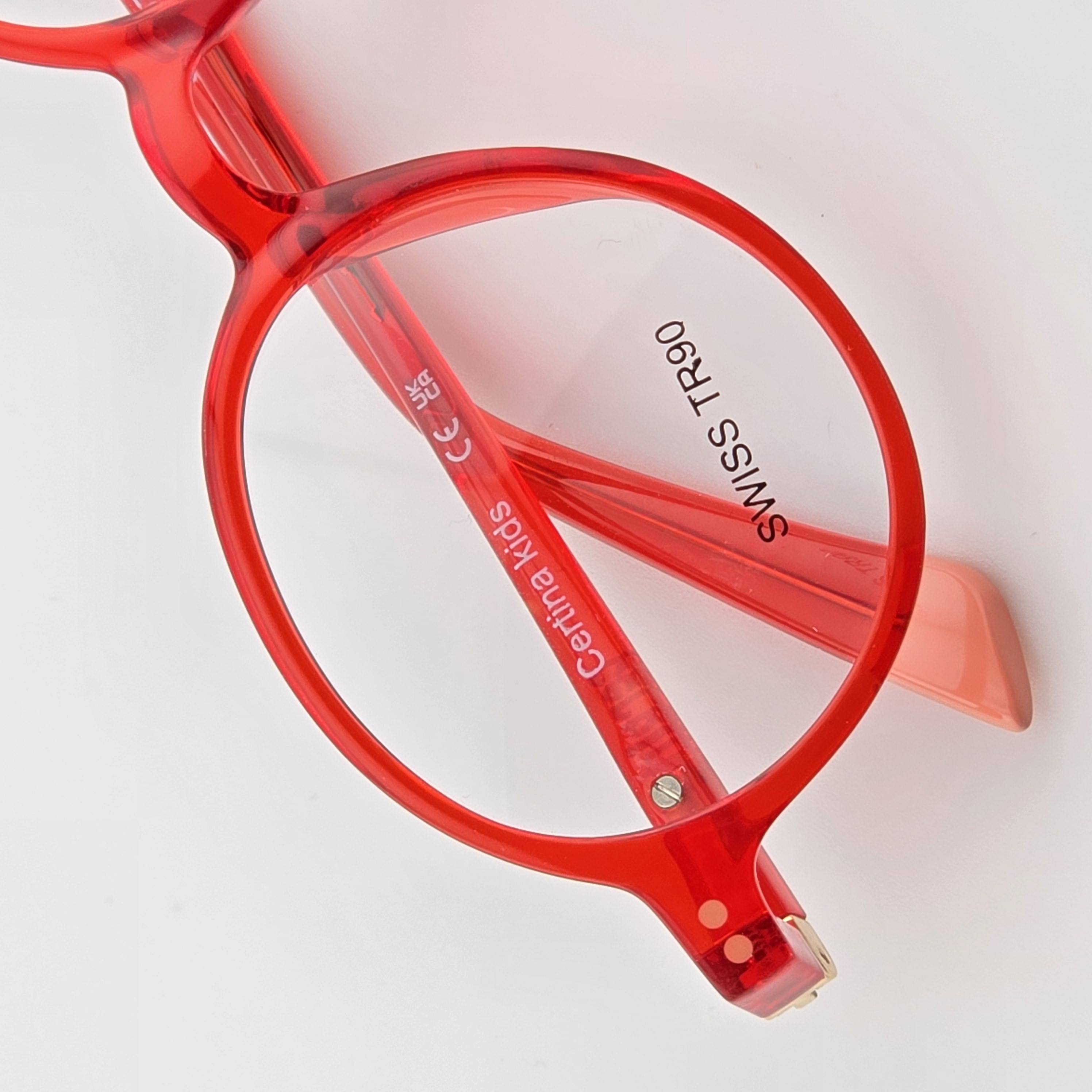 فریم عینک طبی کائوچو دخترانه و پسرانه سرتینا کیدز(Certina Kids) مدل گرد رنگ قرمز شفاف